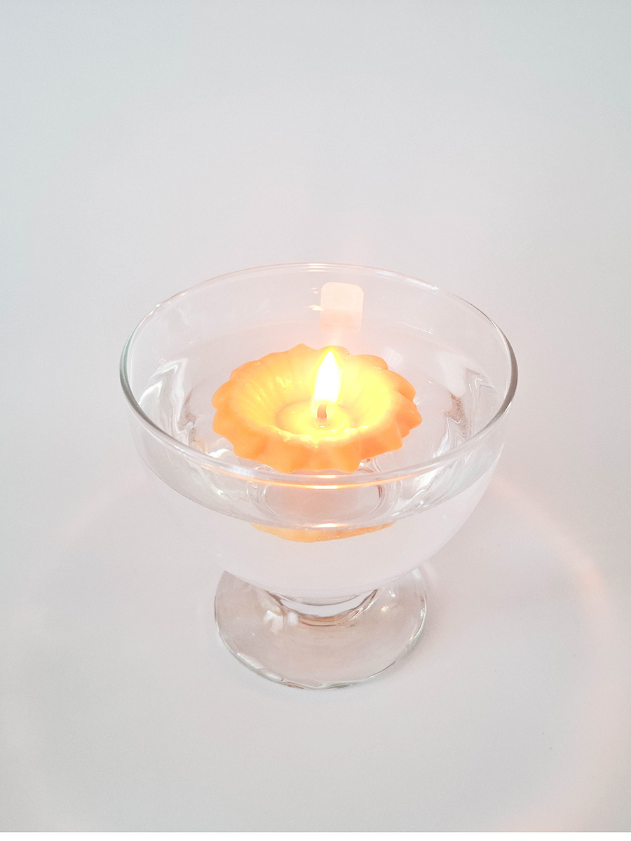 Izbrana skodelica je ravno pravšnje velikosti za eno plavajočo svečko, posebnost med svečami.